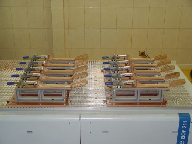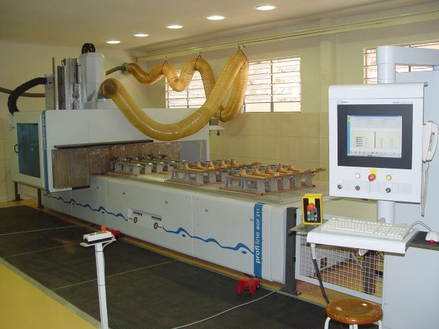 Um centro de usinagem marca Homag com quinto eixo modelo Profiline BOF 211. Mesa nesting, 02 campos de trabalho. Ano 2007 Pronta entrega.