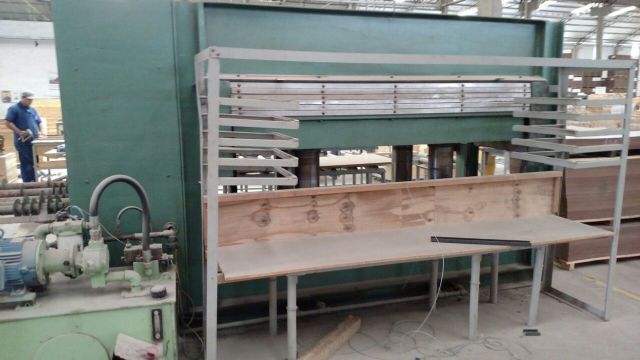 Uma prensa hidráulica elétrica marca Sirma composta de 06 pratos, 05 vãos e 04 pistões. Máquina em excelente estado de conservação. Pronta entrega.