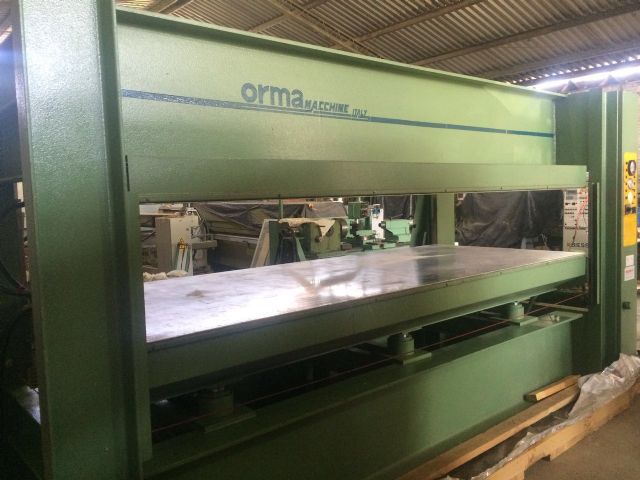 Prensa hidráulica marca Orma com aquecimento à óleo composta de 02 pratos, 01 vão e 06 pistões.