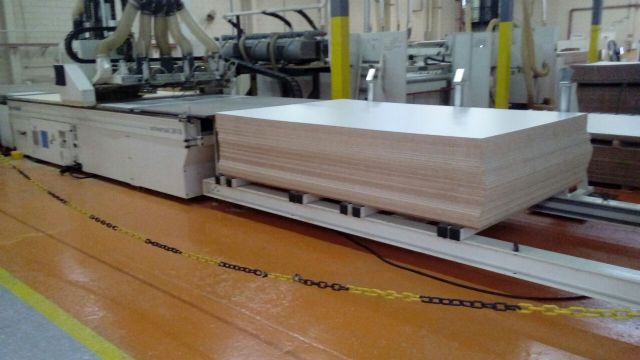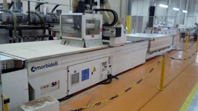 Célula nesting marca Morbidelli com carregador e descarregador automáticos.