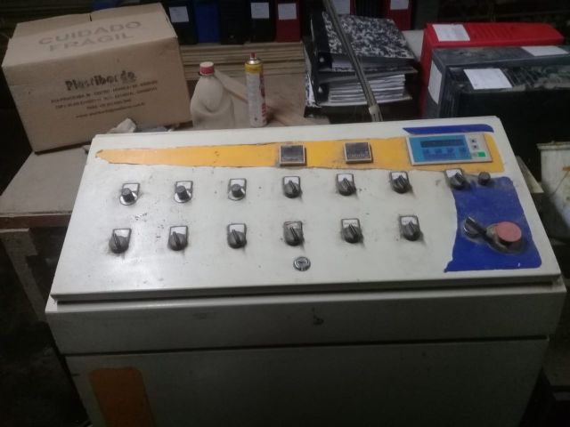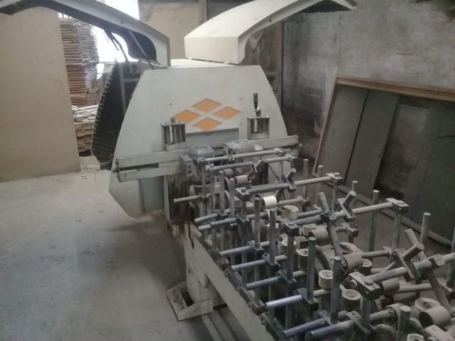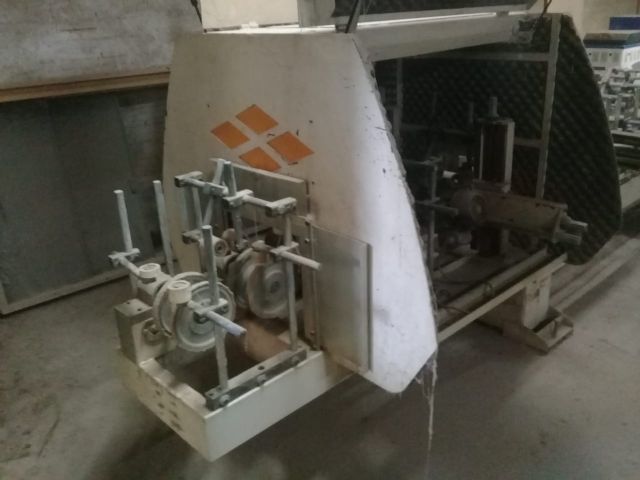 Recobridora de perfis marca Gaidzinsk composta de: Aplicador labial para cola PUR; Serra pra divisão; Rebarbador; Fresa. Para batentes e guarnições.