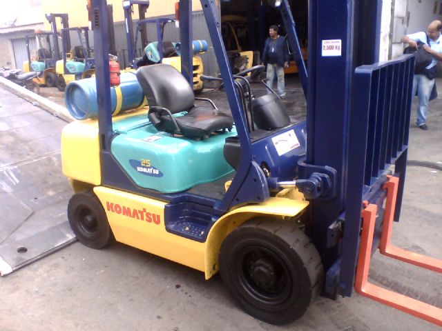 Temos usadas com garantia de 90dias. KOMATSU FG25 T12 -Deslocador lateral. -Pedal de aproximação. -Motor NISSAN k25. -Transmissão automática. -Pneus semi elásticos. -Elevação da torre 4100mm. -Garfos de carga padrão. -Luzes,lanternas,cinto de segurança.